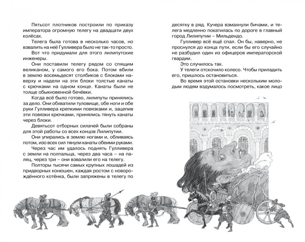 Гулливер с детства грезил о море и приключениях. Вместе с ним мы отправимся в Лилипутию, населённую крошечными человечками, побываем в Бробдингнеге, где живут великаны, и даже обычная лягушка в разы больше корабельного врача. Каждая остановка станет незабываемым приключением и покажет читателю, что благодаря пониманию и доброте можно найти друзей в любом уголке земли.