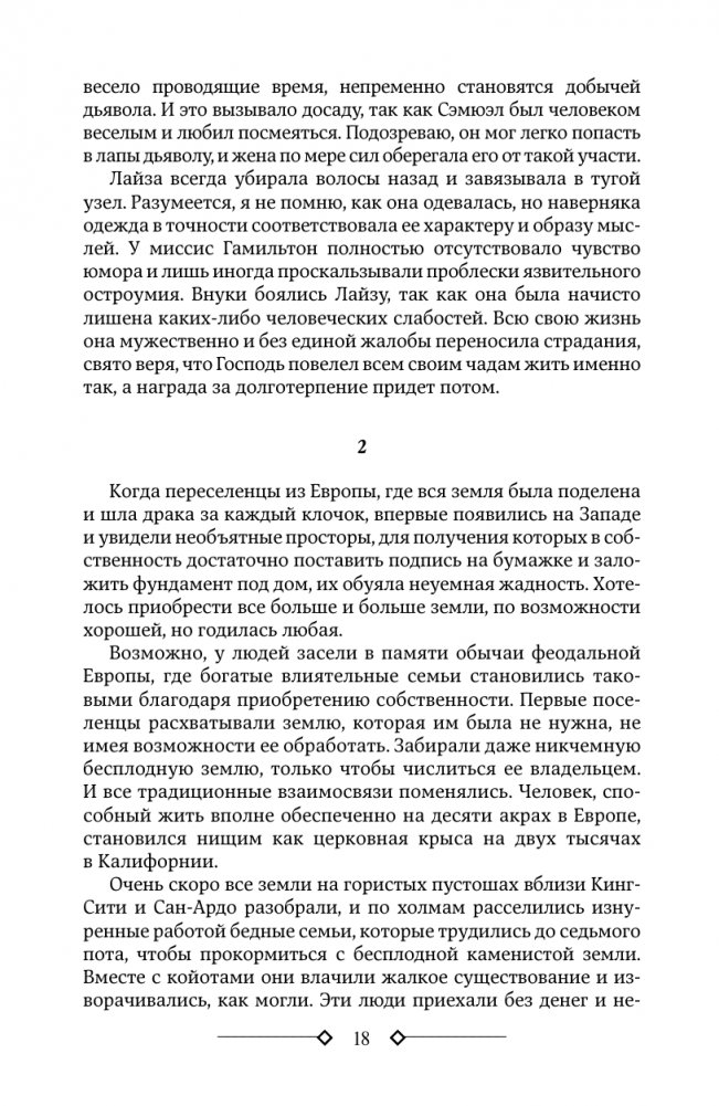 "К востоку от Эдема" – книга о страстной любви и ненависти, об ошибках и преступлениях, о доверии и предательстве. В основе сюжета – история двух сыновей калифорнийца Адама Траска, своеобразных Каина и Авеля. Каждый из них ищет свой путь в этом мире и постоянно оказывается перед выбором: творить добро или зло, стать жертвой или безжалостным хищником…