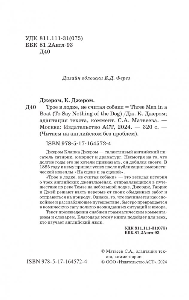 Трое в лодке, не считая собаки = Three Men in a Boat (To Say Nothing of the Dog)