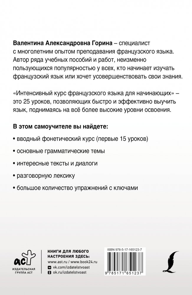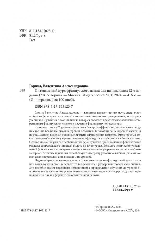 Горина Валентина Александровна — кандидат педагогических наук, специалист в области французского языка с многолетним опытом его преподавания, автор ряда учебников и учебных пособий, целью которых является практическое овладение современным французским языком и изучение франкоязычной культуры.