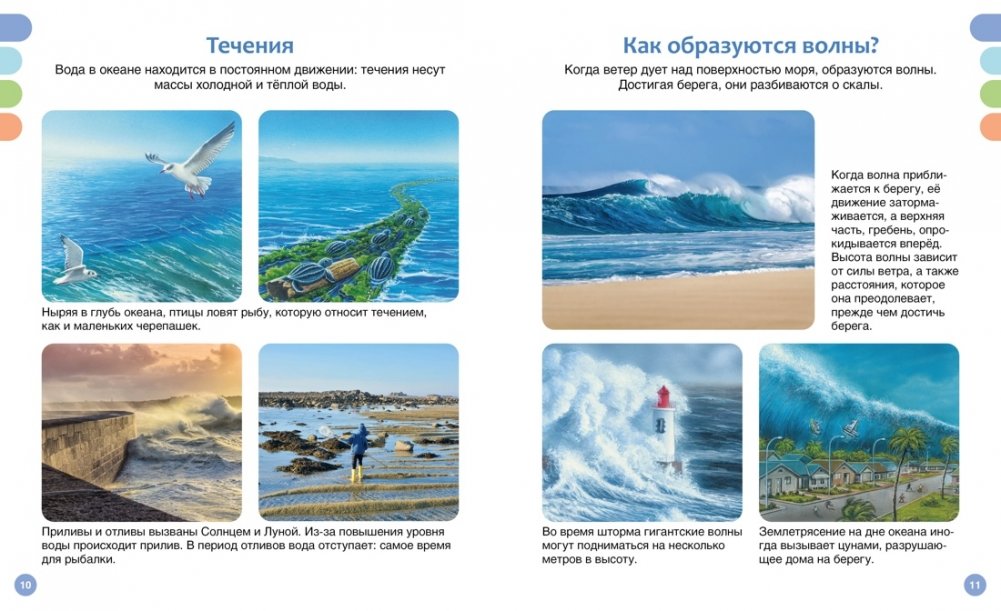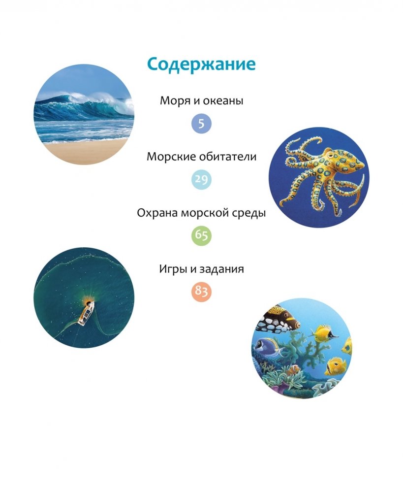 В этой книге рассказывается о морях и океанах нашей планеты. Юные читатели узнают, как передвигаются офиуры, почему ламантина называют морской коровой, где обитают дюгони и кто такие асцидии, рассмотрят разные виды акул и скатов, выяснят, как образуются волны и дюны, а также чем отличаются океаны друг от друга. В книгах серии – только самая актуальная информация и самые современные иллюстрации! И это ещё не всё: в конце каждой книжки собраны увлекательные задания и игры, которые помогут весело провести время и повторить изученное.
