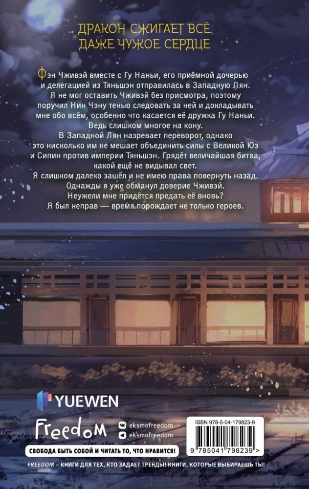 На страницах романа вас ждет незабываемое путешествие в Западную Лян, где вы вместе с Фэн Чживэй и Гу Наньи узнаете шокирующую тайну происхождения приемной дочери юноши — Гу Чжисяо, вновь столкнетесь с кознями клана Нин и окажетесь на пороге грандиозного противостояния.