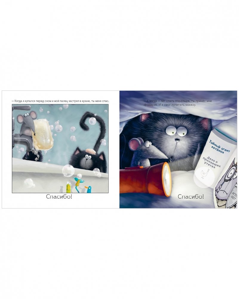 Что делать, когда твой друг болен и приуныл? Чтобы развеселить мышонка Сырника, котёнок Шмяк сделал целую Книгу дружбы. В ней Шмяк говорит Сырнику спасибо. За что? За то, что Сырник — самый лучший на свете друг!