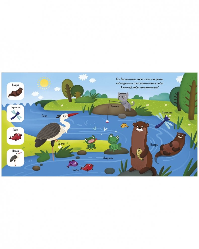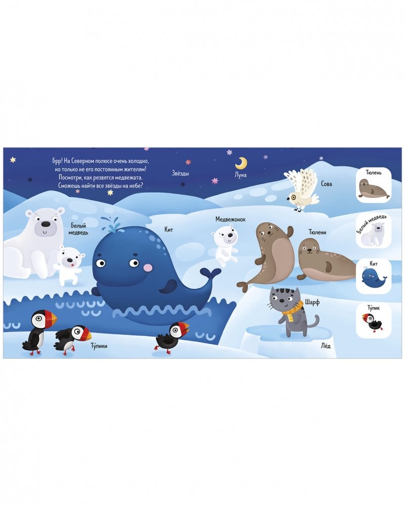 Однажды домашний кот решил отправиться в кругосветное путешествие и познакомиться с обитателями разных уголков Земли! Открывайте книгу и следите за его приключениями в лесах, горах, саванне, джунглях и даже на Северном полюсе! А ещё играйте в «найди и покажи» и изучайте удивительный и разнообразный мир животных!