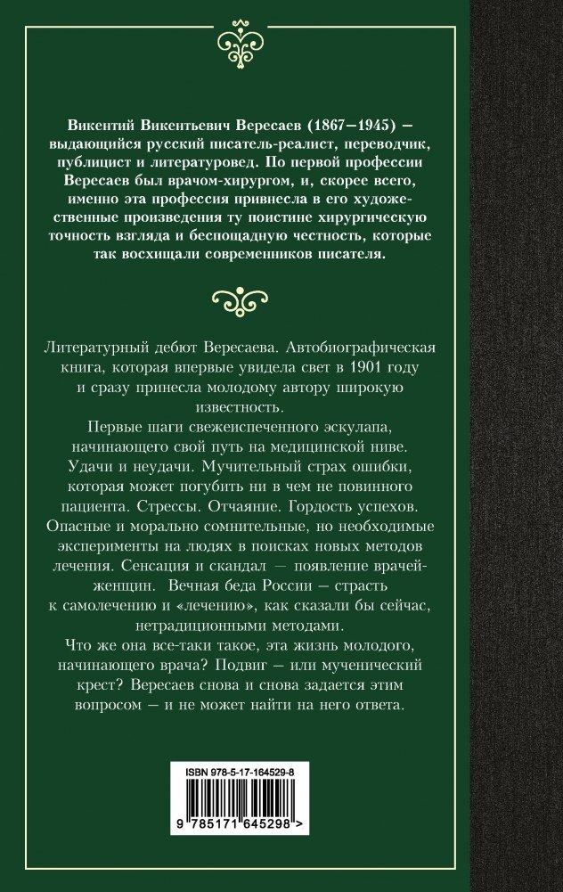 Литературный дебют Вересаева. Автобиографическая книга, которая впервые увидела свет в 1901 году – и сразу принесла молодому автору широкую известность.
