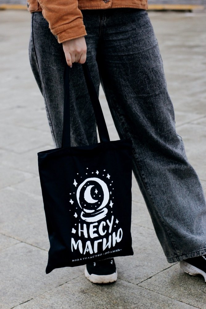 Шопер "Несу магию" от издательства "Полынь". На молнии, 33х40 см, с карманом из саржи. Ручки - 60х2,5 см.
