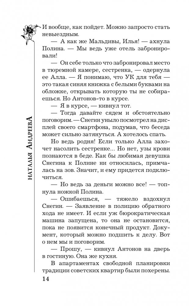 А началось все банально, с драки. Навязчивый поклонник, некий Герман, появился у дверей красавицы Полины с букетом роз. Муж, разумеется, не выдержал и наглеца проучил. Сломанная челюсть и выбитый зуб – это уже статья. Чтобы не сесть в тюрьму, пришлось договариваться с потерпевшим, и капитан полиции Снегин подключился к проблемам своей новой родни. Каково же было его удивление, когда они с Германом снова столкнулись, и поводом послужил уже не букет цветов, а… труп! Бизнесмен Егор Зуев был человеком сложным, и врагов у него хватало. И Снегин быстро понял, что это одно из самых загадочных дел в его карьере сыщика. Ведь под дракой часто маскируется заказное убийство…