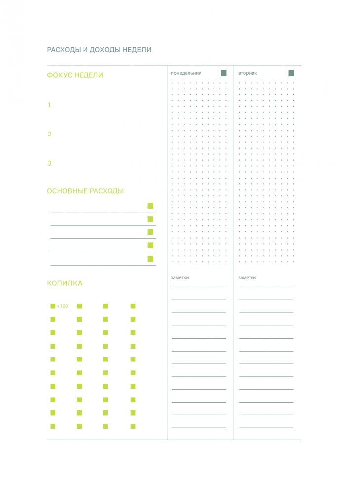 • чек-листы по неделям;