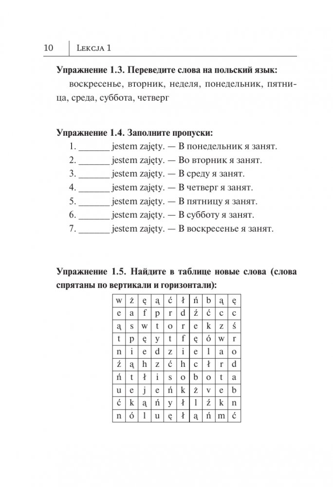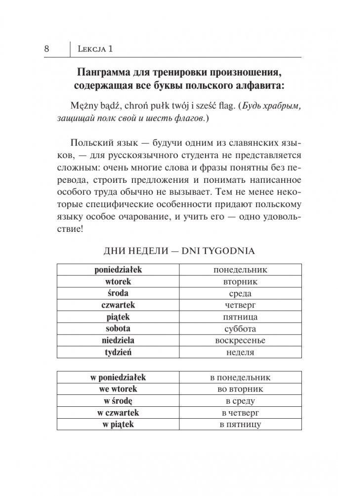 Самоучитель предназначен для всех, кто желает в короткий срок получить базовые знания польской грамматики и навыки устной и письменной речи. Книга состоит из 20 уроков, построенных по принципу от простого к сложному. В каждом уроке вы найдете наиболее употребительные разговорные фразы и упражнения с ответами.