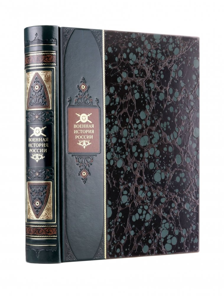 Военная история России. Книга в коллекционном переплете из двух видов кожи с рисунком мраморной бумаги и с изящным тиснением в стиле XIX века