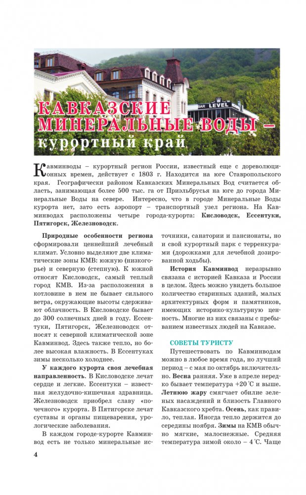 Книга рассчитана на самостоятельных путешественников, готовых познакомиться с уникальным регионом, богатым историей, культурой, уникальными природными объектами. Кавказские Минеральные Воды – особо охраняемый эколого-курортный регион Северного Кавказа. В путеводителе вы найдете описания маршрутов самых интересных прогулок по городам-курортам и их окрестностям. Авторские фотографии дадут вам представление о местности и достопримечательностях. Карты и схемы значительно облегчат ориентирование. С нашим путеводителем за меньшее количество времени вы увидите больше.
