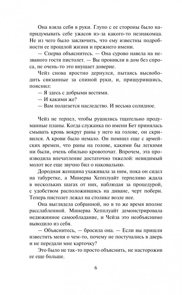 Минерва Хепплуайт — леди, способная о себе позаботиться. Например, обнаружить, что в дом ее вломились, стукнуть грабителя по голове, связать... и с изумлением узнать в нем не преступника, а детектива Чейза Реднора. Этот человек заявляет, что она унаследовала огромное состояние от некоего герцога, погибшего при загадочных обстоятельствах, и что она одна из подозреваемых в убийстве...