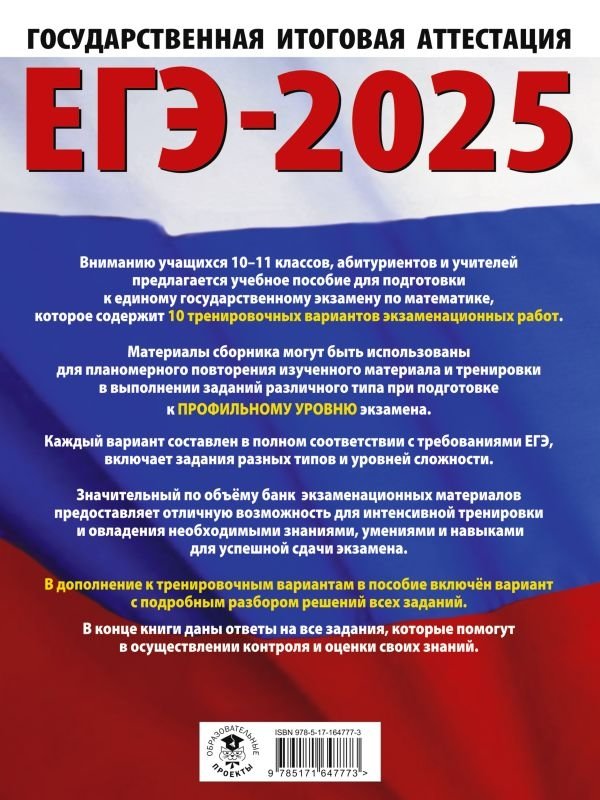 ЕГЭ-2025. Математика. 10 тренировочных вариантов экзаменационных работ для подготовки к единому государственному экзамену. Профильный уровень