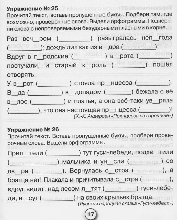 Русский язык. Упражнения на правописание безударных гласных в корне