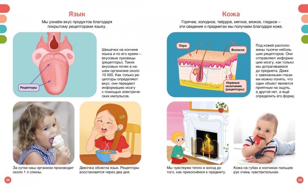 В этой книге рассказывается о строении скелета человека, функциях пяти органов чувств, развитии ребёнка в утробе матери и этапах его взросления. Юные читатели узнают, какие косточки являются самыми маленькими в нашем организме, что такое папиллярные линии, как кожа реагирует на солнечные лучи, а также почему левое лёгкое меньше правого, выяснят, как устроен процесс пищеварения и чем отличаются близнецы от двойняшек. В книгах серии – только самая актуальная информация и самые современные иллюстрации! И это ещё не всё: в конце каждой книжки собраны увлекательные задания и игры, которые помогут весело провести время и повторить изученное.