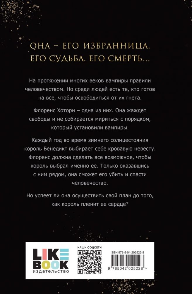 Каждый год во время зимнего солнцестояния король Бенедикт выбирает себе кровавую невесту. Флоренс должна сделать все возможное, чтобы король выбрал именно ее. Только оказавшись с ним рядом, она сможет его убить и спасти человечество.