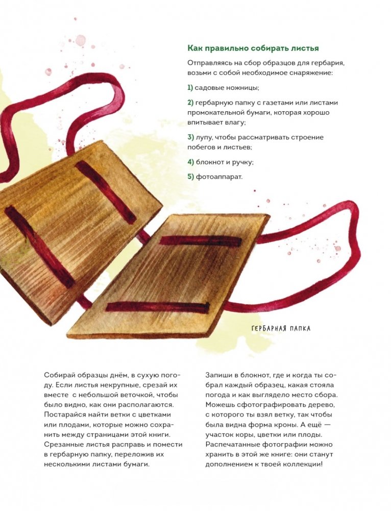 Книга-гербарий знакомит ребёнка с деревьями средней полосы России и предлагает сохранить их листья здесь же, между страницами книги. Тексты, написанные учёным-ботаником, и реалистичные акварельные иллюстрации откроют ребёнку мир деревьев, научат внимательнее относиться к природе и искренне восхищаться её красотой. Помимо интересных фактов о деревьях, в книге имеются подробные описания, как правильно собирать и засушивать листья для гербария, а также идеи игр и поделок из листьев. На подробных рисунках можно рассмотреть форму кроны и отдельного листа. Увидеть, как выглядят цветы, плоды и семена каждого дерева, узнать много интересных историй, связанных с этими деревьями. Но это ещё не всё. Можно стать не только читателем, но и полноправным автором этой книги. Собрать листья деревьев, засушить их, приклеить полосками бумаги на специально отведённые станицы и подписать. И тогда получится собственная научная коллекция — гербарий!