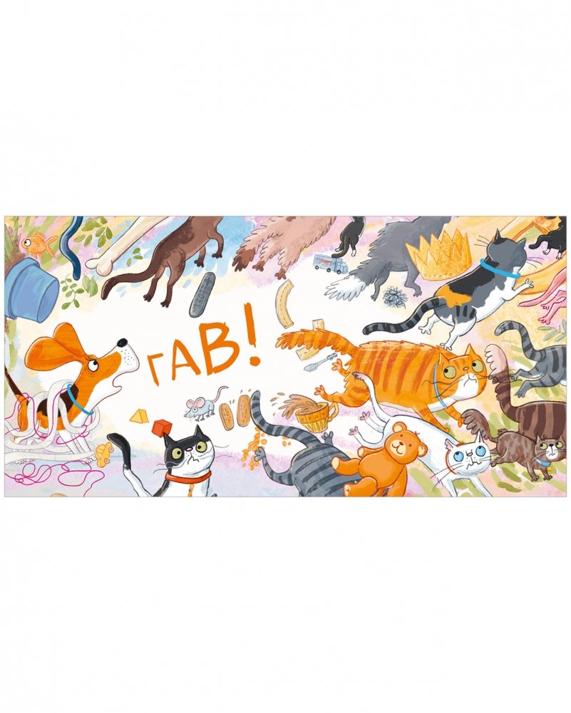 Пес по имени Персик мечтает провести время в тишине и спокойствии: погрызть косточку, вытянуть лапы и сладко вздремнуть. Вот только где бы ему устроиться? На диване, под диваном, на окне, на столе, под окном… В доме нет места бедному песику, потому что везде и всюду… СЛИШКОМ МНОГО КОТОВ! Бесконечные кошки переворачивают миски, лезут лапами в аквариум, царапают диван, а Персик еще и виноват. Что делать? Выгнать вон всех котов и кошек! Пес думал, что наконец-то отдохнет, но вдруг понял, что, возможно, немного погорячился…