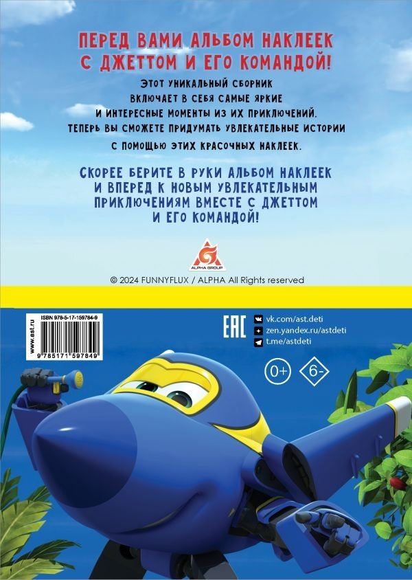 Теперь вы сможете придумать увлекательные истории с помощью этих красочных наклеек. Скорее берите в руки альбом наклеек и вперед к новым увлекательным приключениям вместе с Джеттом и его командой!