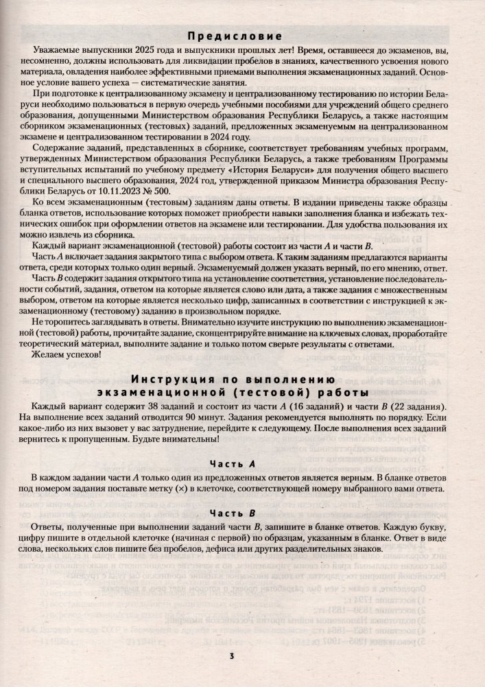 Сборник тестов содержит экзаменационные (тестовые) задания по истории Беларуси, предложенные участникам централизованного экзамена и централизованного тестирования в 2024 году. Ко всем заданиям даны ответы. В издании приведены также образцы бланка ответов, использование которых поможет приобрести навыки заполнения бланка и избежать технических ошибок при оформлении ответов на экзамене и тестировании.