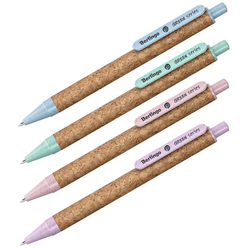 Ручка шариковая автоматическая Berlingo "Green Series" 0,7 мм, синяя, корпус с пробковым покрытием. Арт. CBm_70236