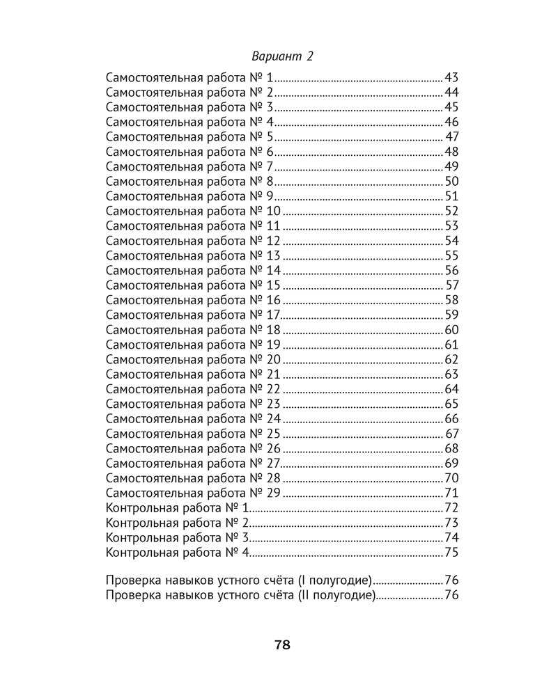Пособие составлено в соответствии с учебной программой. Каждая самостоятельная и контрольная работа представлена в двух вариантах и соотносится с содержанием учебного пособия «Математика. 2 класс» (авторы Г. Л. Муравьёва, М. А. Урбан). В издании также размещён материал для проверки навыков устных вычислений.
