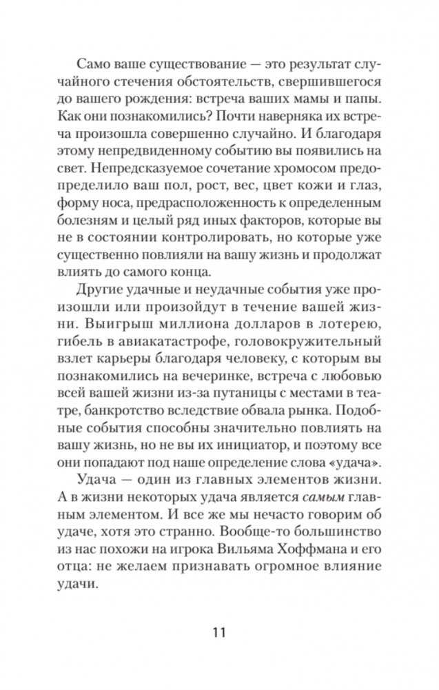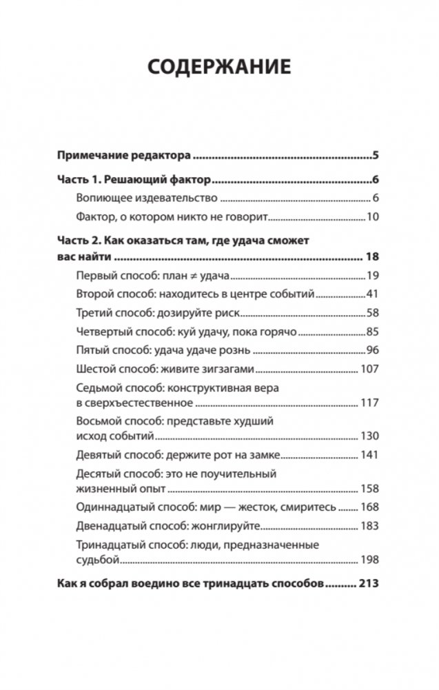 Большинство людей думают, что счастливчиками рождаются. Действительно, некоторым везет гораздо больше, чем другим, но это не случайно. Счастливчики организуют свою жизнь особым образом. Они стремятся встать на путь надвигающейся удачи, они склонны идти туда, где могут встретить счастливый случай. Счастливчики рискуют, но движутся вместе с жизнью, а не против нее. Макс Гюнтер показывает, как случается везение: он описывает тринадцать техник, с помощью которых вы сможете обнаружить и воспользоваться открывающимися вам возможностями и поймать удачу за хвост.
