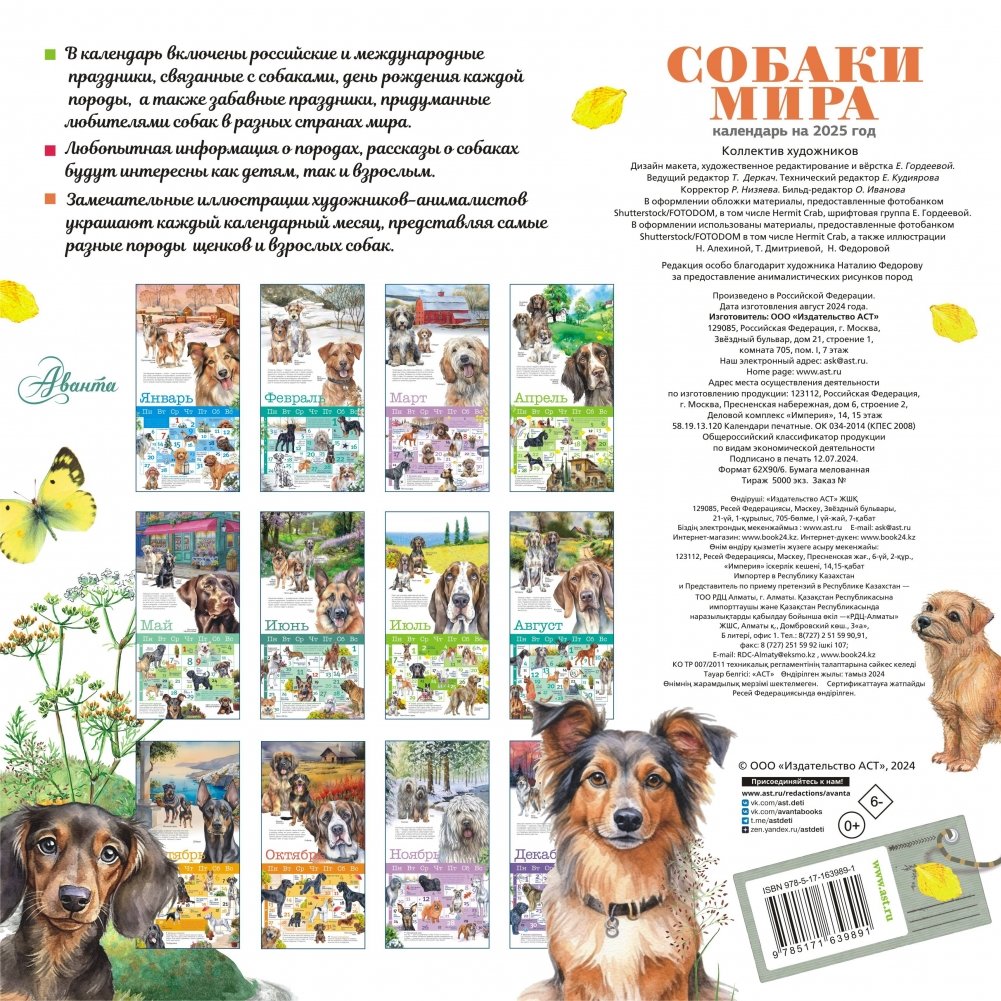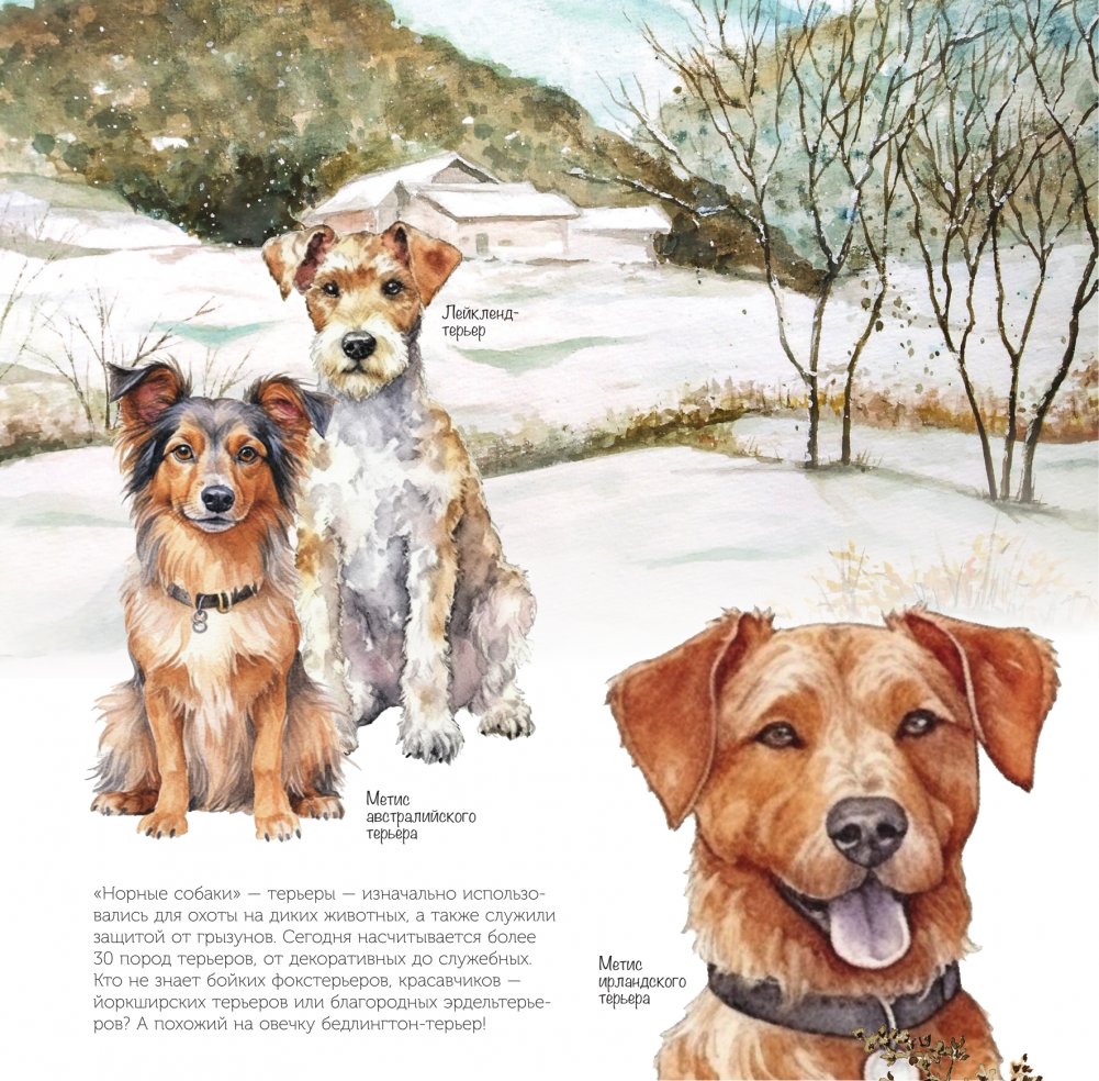 Замечательные иллюстрации художников-анималистов украшают каждый календарный месяц, представляя самые разные породы, щенков и взрослых собак.