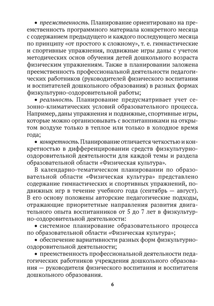 Авторское примерное календарно-тематическое планирование разработано в соответствии с учебной программой дошкольного образования (образовательная область «Физическая культура») для воспитанников 5—7 лет.