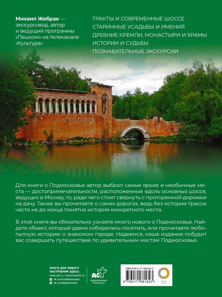 Автор книги, Михаил Жебрак, — экскурсовод, автор и ведущий программы "Пешком" на телеканале "Культура". Предлагаем вам вместе с Михаилом прогуляться по самым интересным местам Подмосковья.