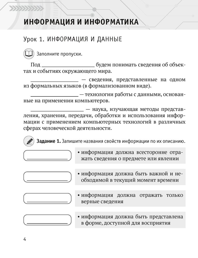 Практикум составлен в соответствии с учебной программой по информатике для 6 класса. Пособие содержит теоретический материал и практические задания по каждой изучаемой теме. Задания, представленные в практикуме, имеют разный уровень сложности, что способствует формированию метапредметных и предметных компетенций, развитию логического и алгоритмического мышления, творческого потенциала учащихся.