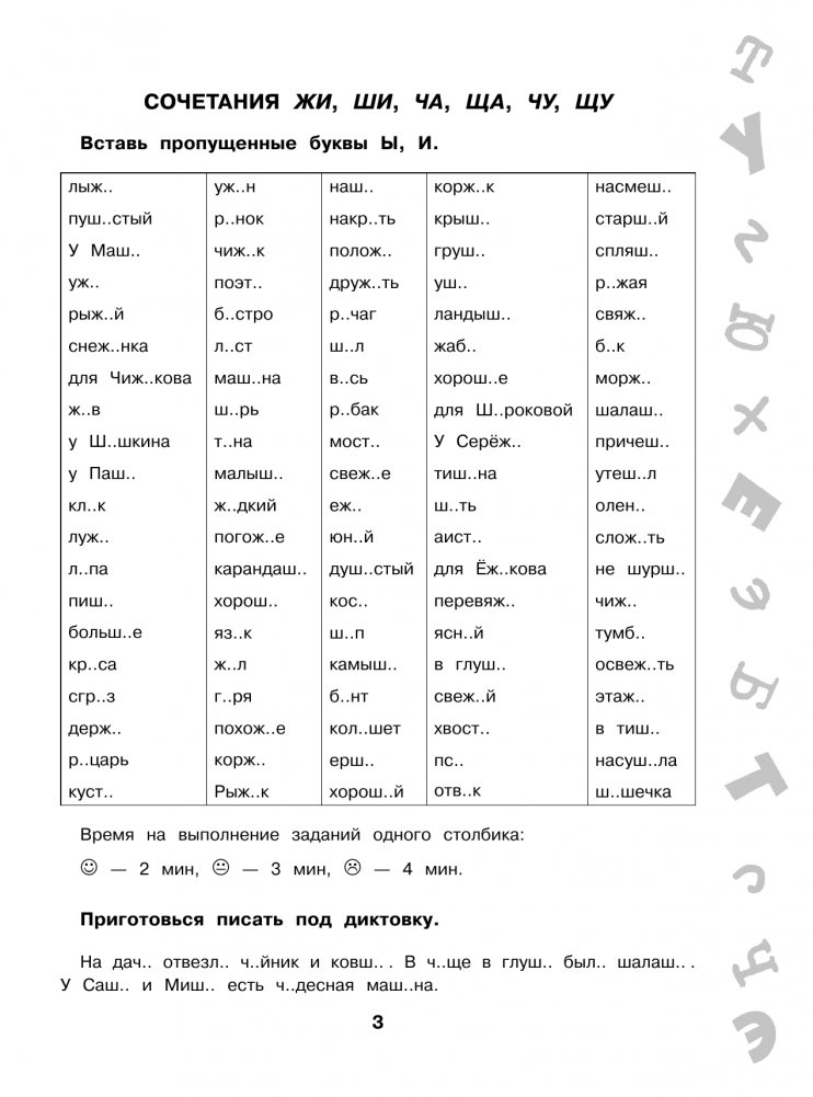 В пособие вошли задания на все орфограммы и правила, которые помогут ребёнку научиться писать грамотно и обеспечат более глубокое усвоение материала. Ребёнок будет не только списывать текст без ошибок и вставлять пропущенную букву или знак, но и найдёт ошибки в словах, выполнит задания на время, объяснит орфограммы в диктанте, повторит правила и словарные слова, выполнит тесты.