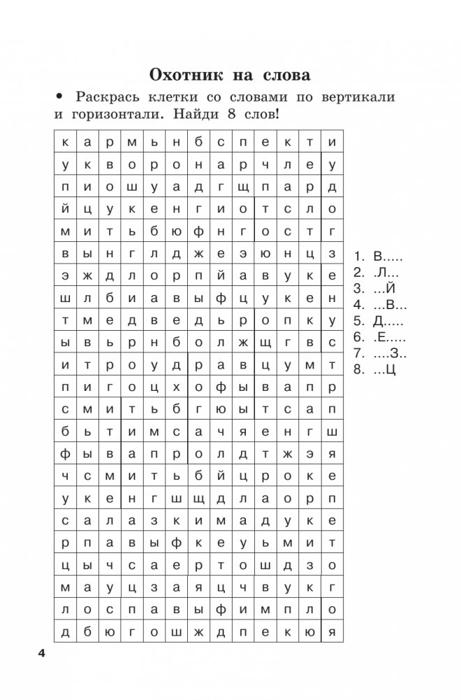 "Словарные слова и кроссворды" — это сборник кроссвордов по русскому языку для учеников 1–4-го классов, основанный на авторской методике О. В. Узоровой. Решение кроссвордов помогает выучить словарные слова, вызвать познавательный интерес к русскому языку, развивает внимание, мышление, память, а также способствует обогащению словарного запаса и формированию орфографической зоркости. Разгадывать кроссворды можно на уроках русского языка, на внеклассных занятиях или дома с родителями.