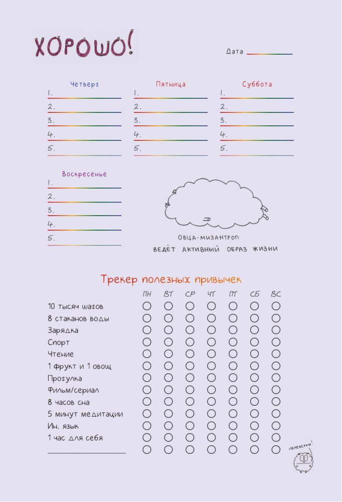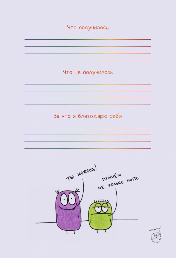 Недатированный ежедневник-планер, украшенный забавными жизнеутверждающими иллюстрациями Татьяны Задорожней @fevrony.