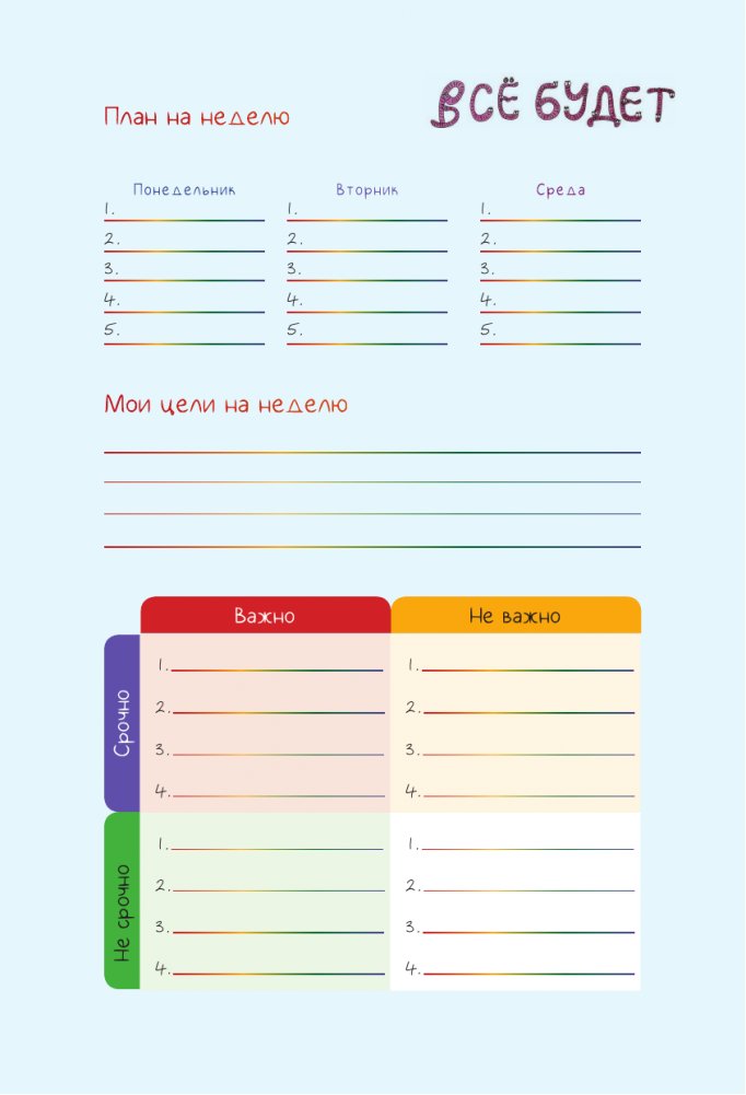 Ежедневник включает в себя всё, что нужно для грамотного планирования дня в течение целого года, и даже больше: