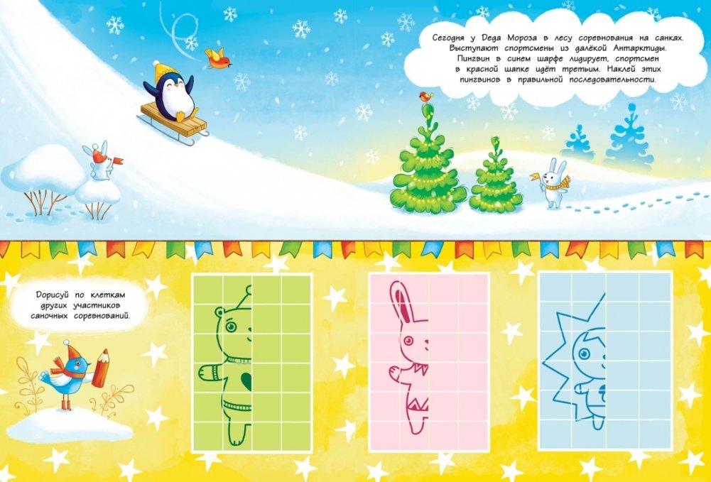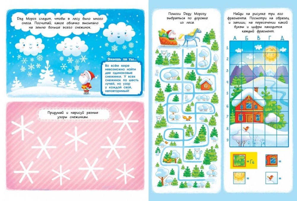 У Дедушки Мороза перед Новым годом масса дел: надо проследить за тем, чтобы в лесу было достаточно снега, и игрушки для ёлки смастерить, и подарки упаковать, а ещё обязательно написать стих для конкурса! В этой книжке тебя ждут лабиринты, игры с наклейками и рисовалки, загадки и кроссворды. Испеки вместе с белочками пряники, смастери игрушки для ёлки с Дедушкой Морозом и вырежи яркие маски для новогоднего праздника. Запасайся цветными карандашами и праздничным настроением — и вперёд, в зимнюю сказку!