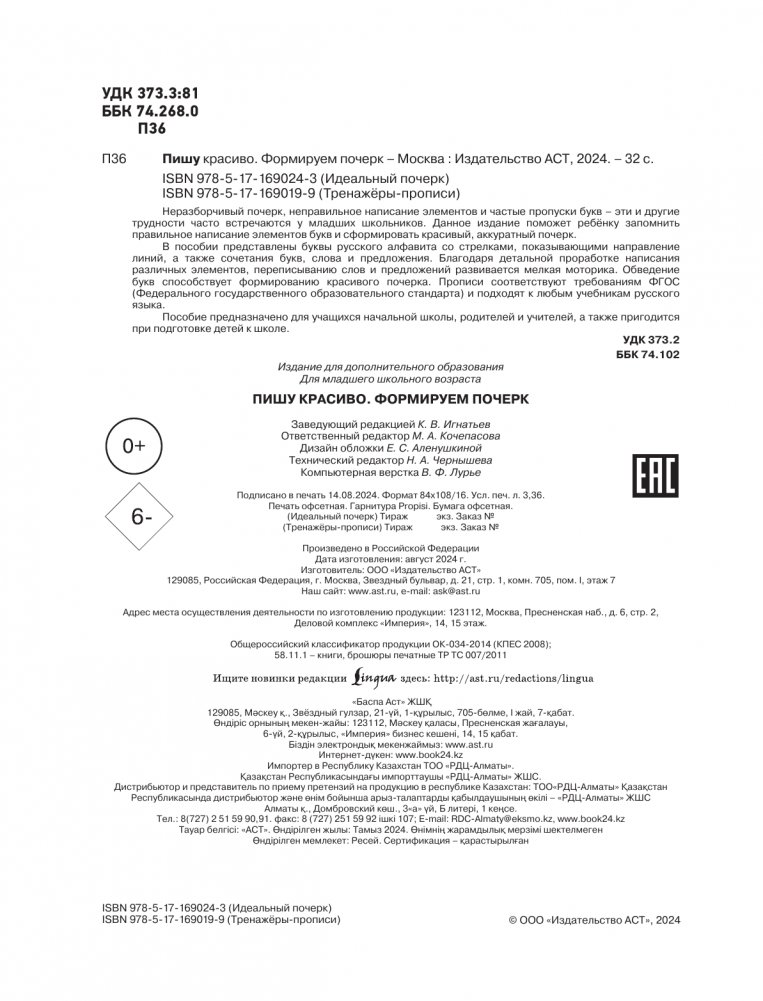 Неразборчивый почерк, неправильное написание элементов и частые пропуски букв – эти и другие трудности часто встречаются у младших школьников. Данное издание поможет ребёнку запомнить правильное написание элементов букв и сформировать красивый, аккуратный почерк.