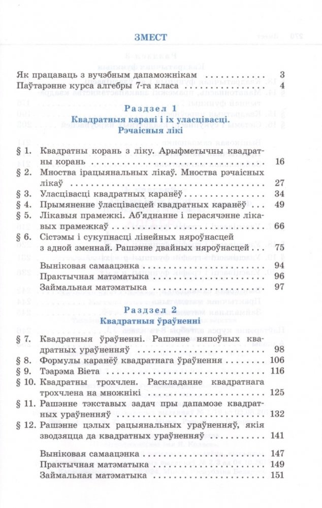 Алгебра. 8 клас. Вучэбны дапаможнік