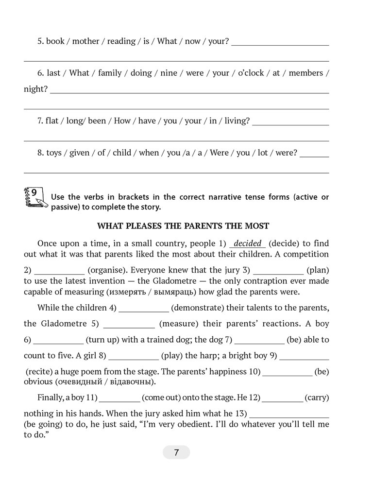 Практикум дополняет учебное пособие и соответствует программе. Представленные задания помогут одиннадцатиклассникам усвоить основные грамматические структуры, которые они смогут правильно употреблять в речи.