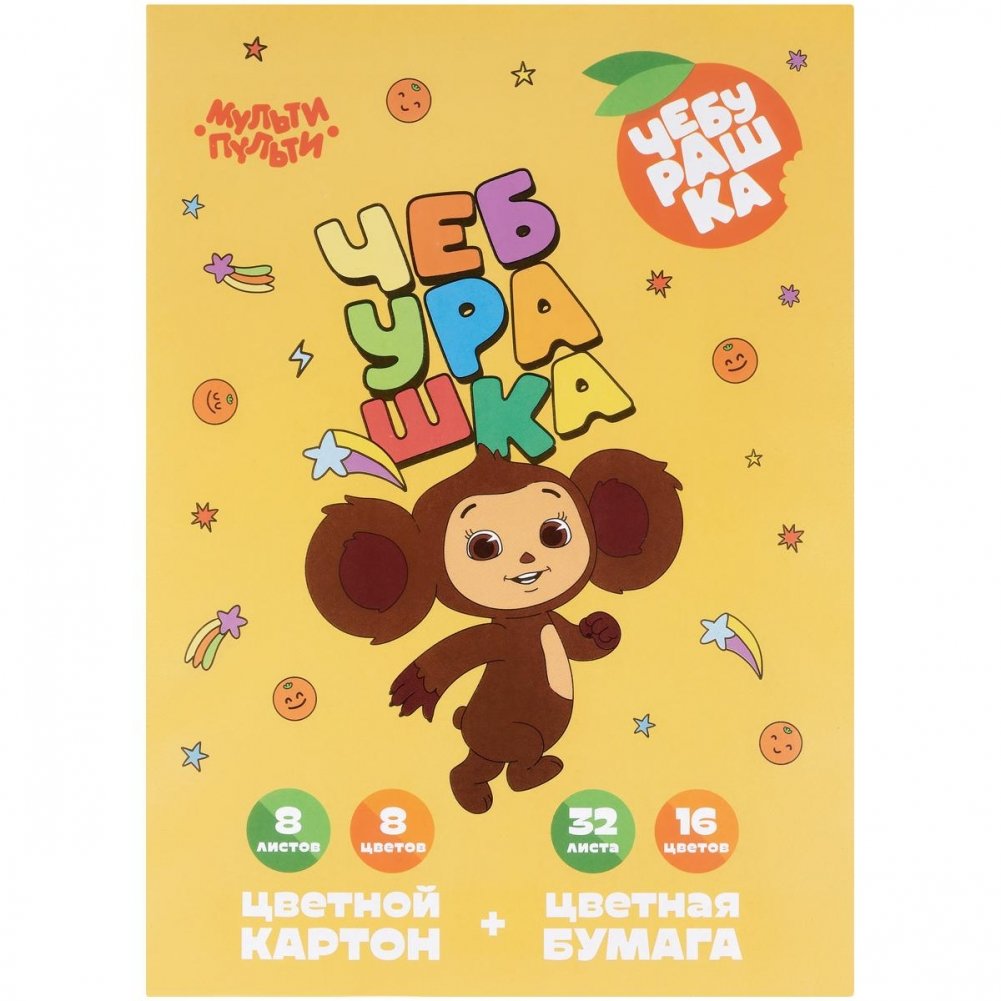 Набор А4 цв. мелов. картона, 8 листов, 8 цветов и цвет. двустор. офсет. бумаги, 32 листа, 16 цветов, Мульти-Пульти "Чебурашка", в папке. Арт. БК16-8_59768