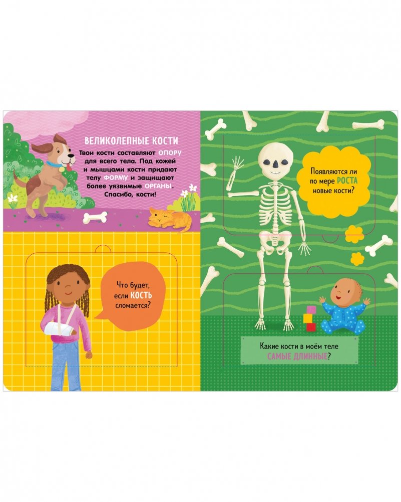 Книжка с окошками «Как устроено тело человека. И другие интересные вопросы» в доступной, увлекательной и наглядной форме расскажет ребенку о работе разных систем организма.