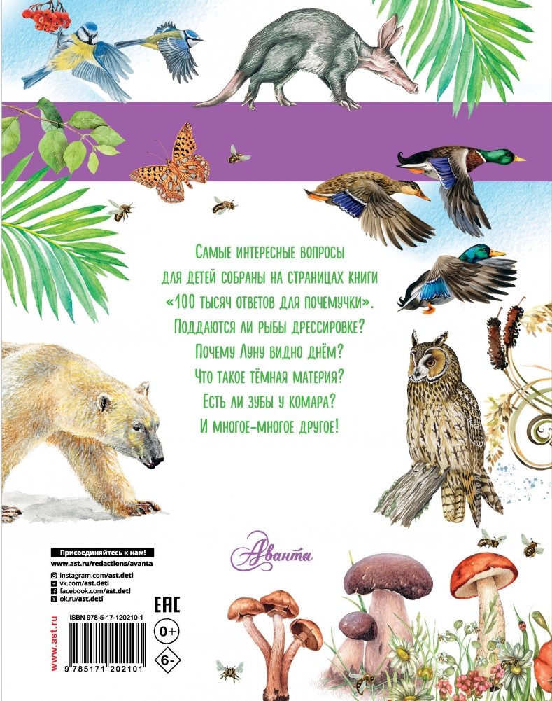 В этой энциклопедии содержатся ответы на самые интересные вопросы маленького почемучки. У какого животного больше всего зубов? Как спят слоны? Зачем жирафу длинный язык? Малыш узнает, почему звёзды мерцают, как работает микроволновая печь и многое другое. Любопытные факты и ответы даже на самые сложные вопросы в этой книге рассказаны понятно и интересно. Энциклопедия поможет детям узнать много нового и лучше понять окружающий мир.