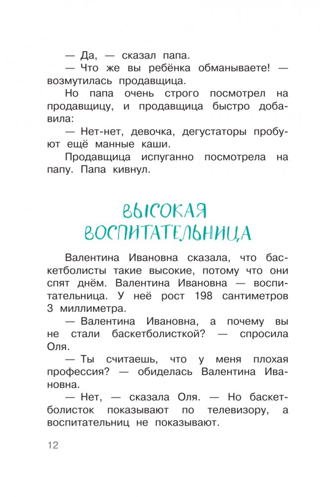 В сборник вошли цикл "Про Олю", а также отдельные рассказы Артура Гиваргизова. Рисунки художника-иллюстратора и театрального художника-постановщика Евгения Подколзина.