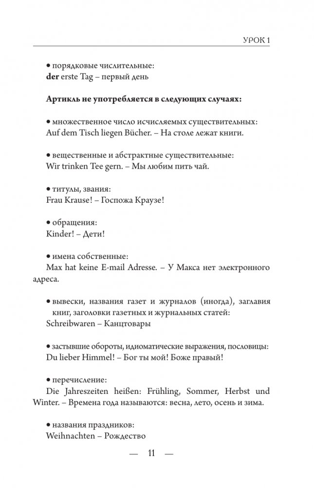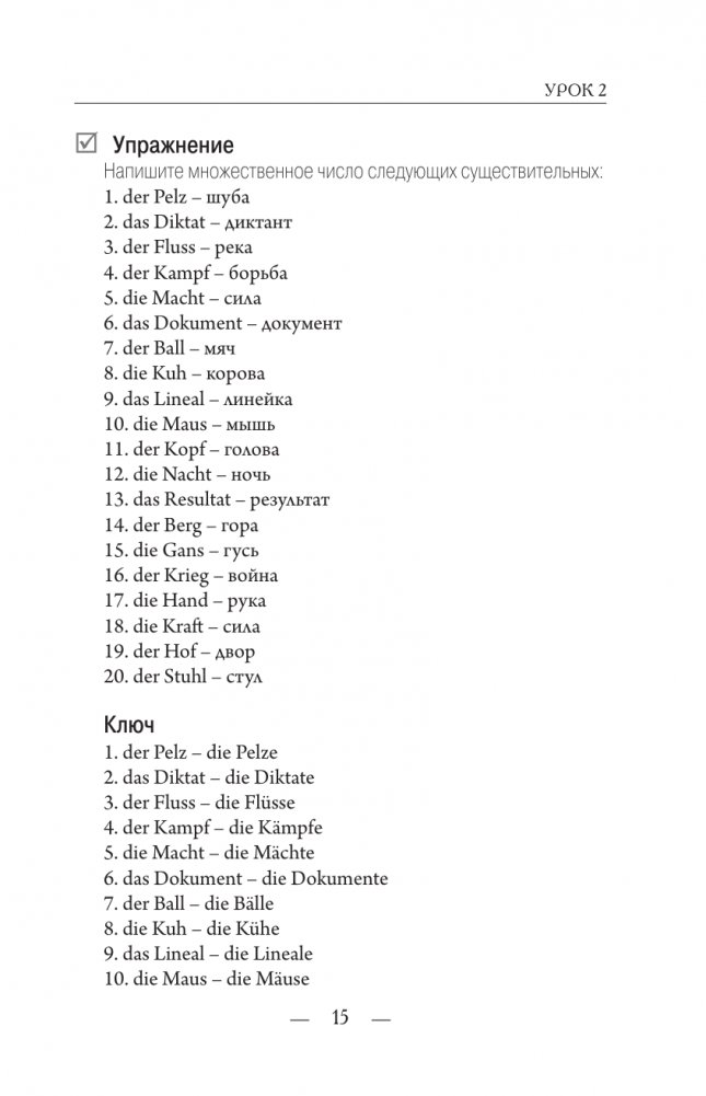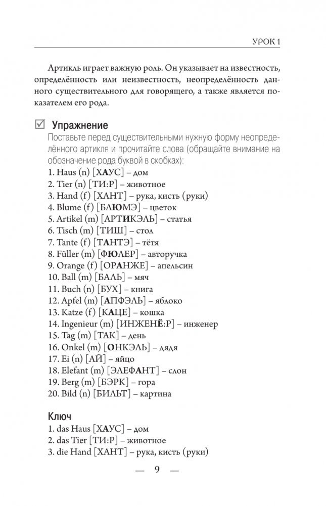 Данный самоучитель содержит лексический и грамматический материал для изучения немецкого языка с нулевого уровня. Большое количество наглядных примеров и таблиц облегчает запоминание материала. Для закрепления полученных знаний к каждому уроку приводятся упражнения, ключи к которым удобно расположены рядом.