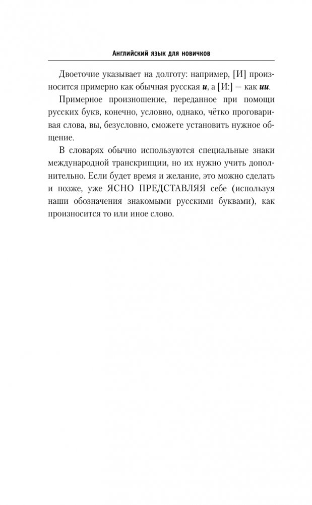 Издание содержит базовый курс грамматики английского языка и предназначено для широкого круга читателей. Книга будет полезна не только тем, кто только начинает изучать английский язык, но и тем, кто уже немного знаком с английским. Оригинальная авторская методика доказывает, что необязательно зубрить, чтобы активно пользоваться иностранным языком. Лексика и грамматика представлены в достаточном объеме, чтобы начать говорить на английском языке.