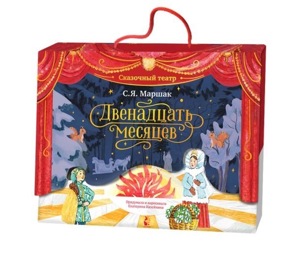 С нашим набором вы сможете не просто прочитать, но и разыграть пьесу "Двенадцать месяцев"! В набор входит все для домашнего театра: сцена и декорации, картонные фигурки всех действующих лиц и книга с полным текстом пьесы. А в конце вы сможете зажечь настоящий волшебный фонарик!