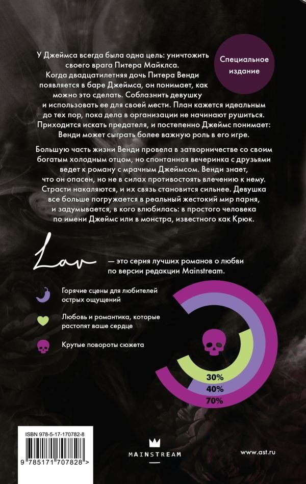 кажется идеальным до тех пор, пока дела в организации Джеймса не начинают рушиться. Приходится искать предателя, и постепенно Джеймс понимает: Венди может сыграть более важную роль в его игре. Большую часть жизни Венди провела в затворничестве со своим богатым холодным отцом, но спонтанная вечеринка с друзьями ведет к роману с мрачным Джеймсом. Венди знает, что он опасен, но не в силах противостоять влечению к нему. Страсти накаляются, и их связь становиться все сильнее. Девушка все больше погружается в реальный жестокий мир парня, и задумывается, в кого влюбилась: в простого человека по имени Джеймс или в монстра, известного как Крюк.