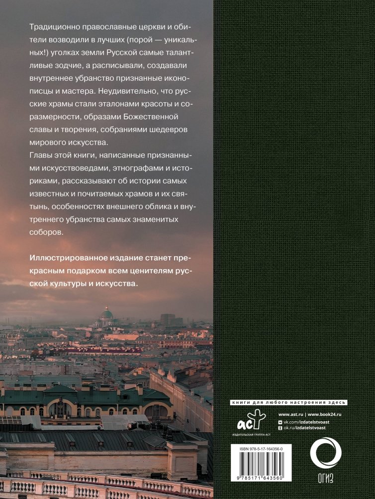 Главы этой книги, написанные признанными искусствоведами, этнографами и историками, рассказывают об истории самых известных и почитаемых храмов и их святынь, особенностях внешнего облика и внутреннего убранства самых знаменитых соборов.