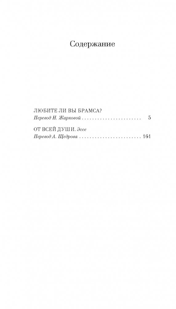 Франсуаза Саган — странная звезда французской литературы, неизменно современный классик вне любой современности. Свои истории о любви в пустоте, где событий в мире нет, но всегда есть приятное времяпрепровождение, она писала под влиянием экзистенциализма Жан-Поля Сартра. Ее рассказы явно вдохновлены Мопассаном. Отчасти она — литературная сестра Сэлинджера, творческий предок Салли Руни: микроскопические движения души всегда интересовали и ее саму, и ее героев гораздо больше, чем любые внешние события и личные поступки. И при этом в реальной жизни Саган находилось место и скандалам в светской хронике, и азартным играм, и бурной любви, и очень объемной реальности — например, парижским событиям 1968 года. Она жила как заблагорассудится в мире, где женщине все еще предназначалась скучная, узкая, подчиненная роль «украшения», и все ее героини исподволь или открыто бунтуют против такого кастинга: притворно играя по правилам, порой чрезмерно увлекаясь и даже начиная искренне верить в собственную игру, они подрывают навязанные законы уже тем, что постоянно очень ясно их осознают. В этот сборник вошли два текста Саган: ее ранний роман «Любите ли вы Брамса?» — история о женщине, чьей жизнью пытаются управлять двое мужчин, и «От всей души» — редкий пример обращения Саган к реальной жизни, собрание глубоких и остроумных рассуждений обо всем подряд: о теледебатах, лошадях, смехе, Катрин Денёв, Жорж Санд и Горбачеве.