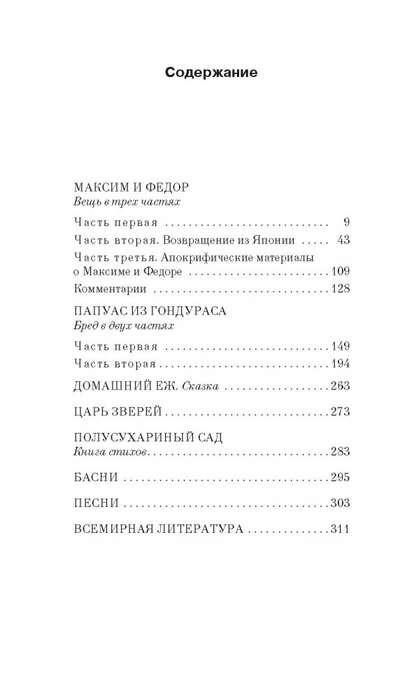 Владимир Николаевич Шинкарев — петербургский художник и писатель, сооснователь творческой группы «Митьки», идеолог митьковского движения. «Максим и Федор» — одно из самых известных произведений самиздата 1970–1980-х годов, разошедшееся на цитаты, подобно «Двенадцати стульям» или «Операции Ы». Необычайная легкость, ироничность и вместе с тем подлинная глубина сделали этот текст всенародно любимым самыми разными поколениями. Максим и Федор — друзья, «полная противоположность», как любит подчеркивать сам Максим, стихийные философы («Максим часто говорил: „Одинаковое одинаковому рознь!“»). Не менее важными героями наряду с Максимом и Федором (и компанией) здесь становятся время и быт — очень узнаваемые детали позднесоветской повседневности вплетаются в универсальный макрокосм человеческой жизни. Максим и Федор, а также ученик их Петр — тоже универсальные герои — герои петербургского текста, который у Шинкарева лишен характерной зловещности, но сохранил магическое измерение. Они осваивают дзен-буддизм и, если верить слухам, совершают путешествие в Японию; они предпочитают вермуту портвейн и, преодолев все мыслимые и немыслимые трудности, наконец достигают Царского Села; они неспешно живут свою жизнь, находя прелесть в самых обыкновенных вещах, и это их свойство заражает и читателя. В настоящее издание включены основные литературные произведения Владимира Шинкарева: «Максим и Федор», «Папуас из Гондураса», «Домашний еж», «Всемирная литература» — эссе, сопровождающие картины о шестнадцати великих произведениях (от «Илиады» до «Преступления и наказания»), иллюстрации к текстам.
